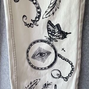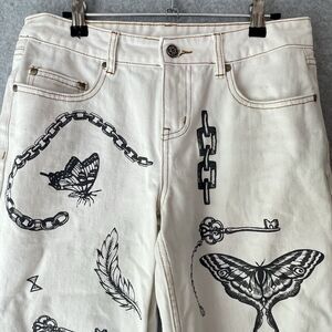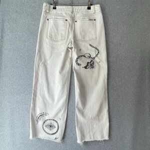 Milk It Jeans Wide Leg Ivory Black Goth Chain Size 26 28