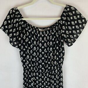 Elastic waistband and the neckline is also elastic, so you could do an off the shoulder look.