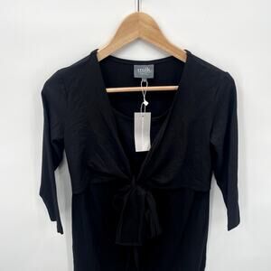 Milk Nursing Black 3/4 Sleeve Nursing Tie Front Dress // S
