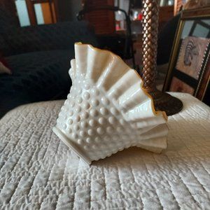 Milk glass hobnail dish with yellow center