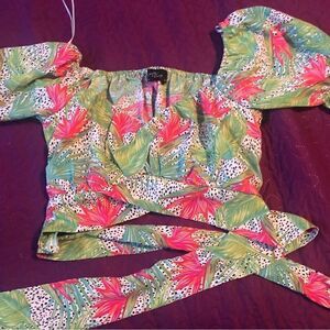 Milk & honey crop top w/ elastic back and ties around - cute - tropical print
