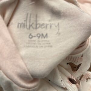 Milkberry Baby Girl Bamboo Set of 2 Footie Sleepers 6-9 months dog bows like new