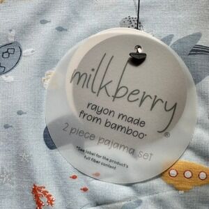 Keywords: Milkberry, baby pajamas, 18M, rayon, bamboo, whale print, submarine print, two piece set, pajama set, sleepwear, infant clothing, baby clothes, new with tags, ocean theme, soft pajamas