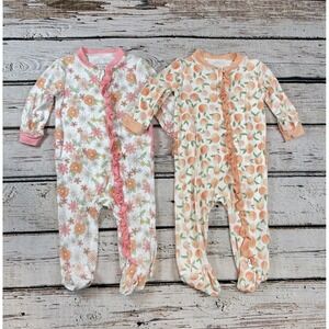 Milkberry Bamboo Baby Girl Sleeper Bundle Lot 0-3m Floral Peach Pink Ruffle New