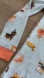 Dogs in costumes print in light gray, brown, tan, white and orange.