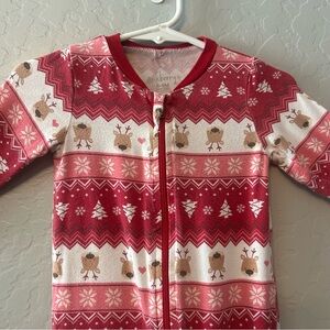 Milkberry bamboo red christmas reindeer print footie pajamas size 6-9 months