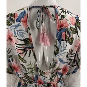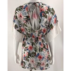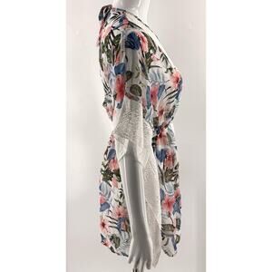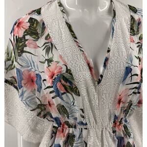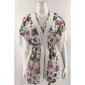 Milken Swimsuit Cover Up Juniors Lace Trim Caftan White Floral Size Small NEW