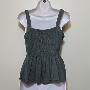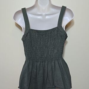 Milkmaid Peasant Sweetheart Tank Top Smocked Linen Olive Renaissance Size Small