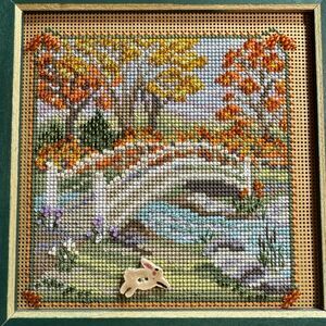 Mill Hill Beaded Cross Stitch Country Lane Foot Bridge MH14-1925 Completed 8"