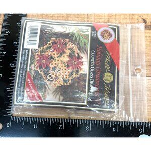 This Mill Hill Holiday Ornaments V kit offers a sophisticated crafting experience. The intricate design combines glass beads and perforated paper, creating an exquisite poinsettia wreath ornament. Ideal for adding a touch of elegance to holiday decor, this kit includes all essential materials and clear instructions.