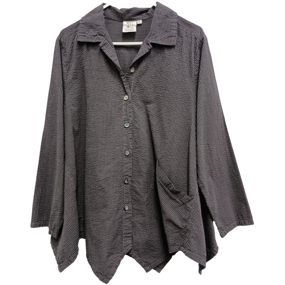 Mill Valley Womens Lagenlook Shirt Small Gray Striped Uneven Coastal Minimalist