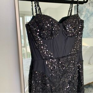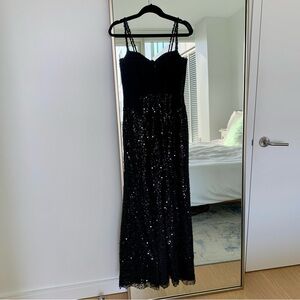Milla Sensational Black Maxi Sequins Semi Sheer Bodice 2401-2 NWT Size Large