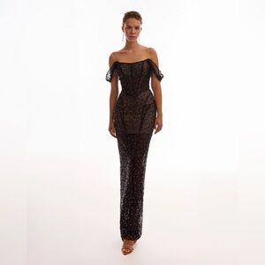 Milla Striking black sequined fitted maxi dress, Midnight Walk