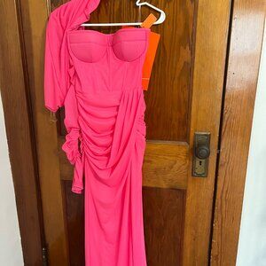 Milla Striking pink off-the-shoulder maxi dress XS, with detachable sleeves NWT
