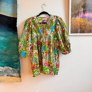 Mille Daisy Blouse Summer Garden Green Pink Floral Large