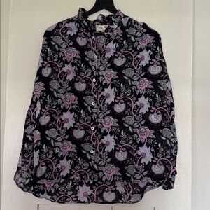 Chic blouse with a floral pattern in black and pink. Perfect for any occasion.