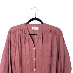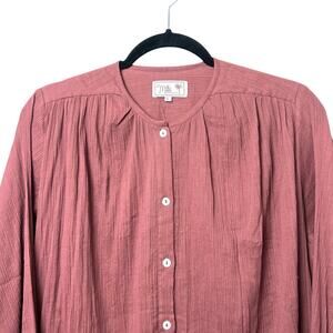 Mille Florian Cotton Gauze Relaxed Fit Long Sleeve Button Front Flowy Blouse Sm