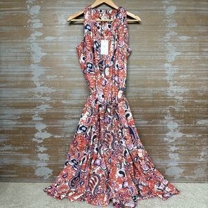Mille NWT Marilyn Midi Dress Tangier Floral Boho Preppy Cotton Flax Womens M
