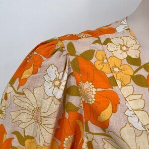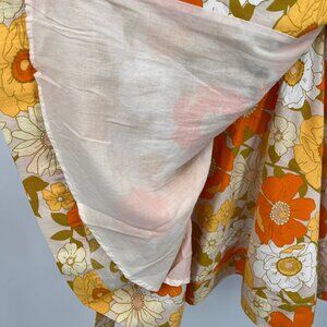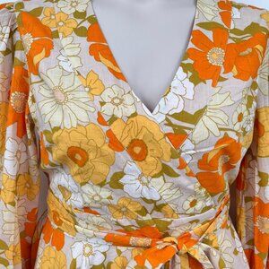 Mille Nan Floral Print Wrap Dress Size M Cotton Yellow Orange Long Sleeve