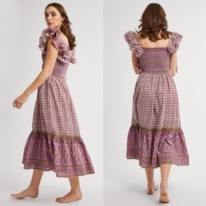 Easy pullover style with a smocked bodice framed by layered ruffled sleeves and a full skirt with tiered hemline and pockets. Perfect for summer days (and nights!), warm weather locations and vacations.