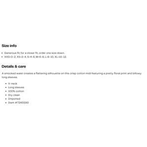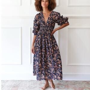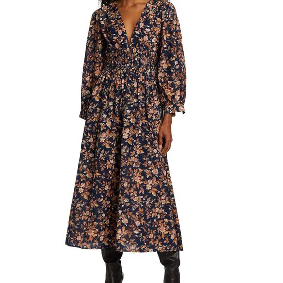 Mille Resort Camille 100% Cotton Smocked Midi Dress Montmarte Floral M