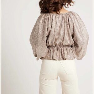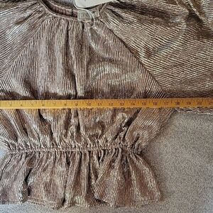 Shimmer in style with this elegant metallic brown top. Perfect for any occasion, this top adds a touch of glamour to your wardrobe.size xxs