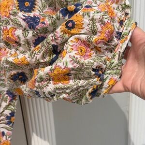 Elevate your wardrobe with the Floral Puff Sleeve Top. Featuring a vibrant multicolor floral design, this top is perfect for any occasion. The puff sleeves add a touch of elegance and style. Large flowy 100 percent cotton