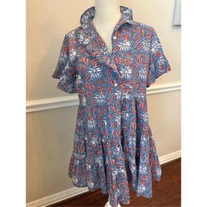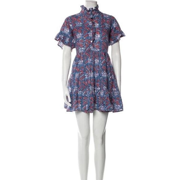 Step out in style with this chic floral mini dress. Perfect for any occasion, this blue dress adds a touch of elegance to your wardrobe. Belt not included.