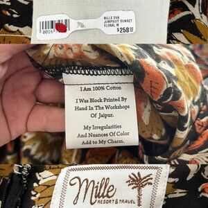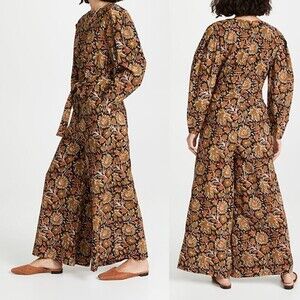 Mille Women Size M Eva Sunset Floral Puff Sleeve Wide Leg Cotton NEW Jumpsuit