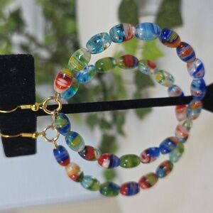 Millefiori Art Glass Oval Bead Hoop Earrings