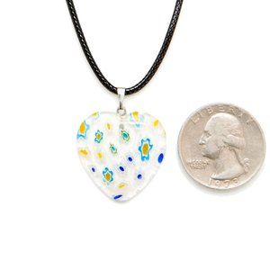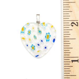 Millefiori Glass Clear Heart Shape with Blue Yellow & Green Flowers Necklace