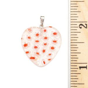 • Item: Millefiori Glass Clear, White, & Red Heart Shape Necklace