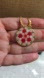 Beautiful vintage iconic Italian design millefiori floral design pink, red, white & green disc glass pendant on a gold-tone Korean stamped chain.