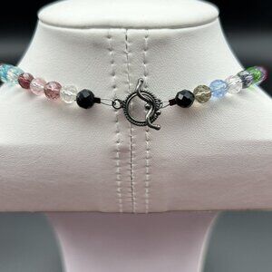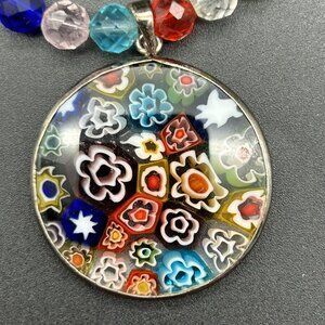 Millefiori Glass Pendant on Handmade Necklace Colorful Toggle Clasp 17" Rainbow
