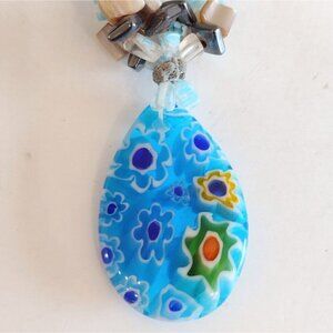 Millefiori Y Drop Glass Pendant Necklace Millefiori Glass Chips Stones Turquoise