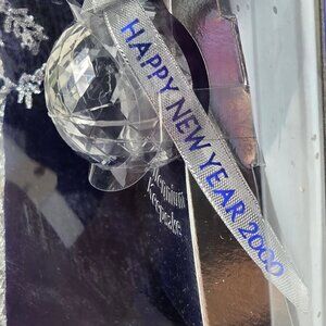 The Millenium Princess Barbie doll has blonde hair and blue eyes. He dress is a combination of blue velvet and silver sparkle accents. She is wearing a necklace and tiara. In her hand she has a silver disco ball with a ribbon reading Happy New Year 2000.
