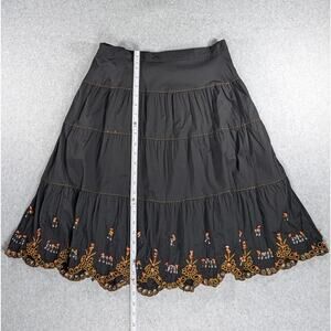 Millenium Skirt M Black Midi Embroidered Beaded Paneled Boho Festival