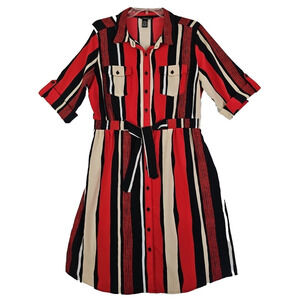 Millenium~Size XL~Red/Multicolor Striped Short Sleeve Button Dress Elastic Waist