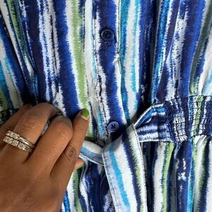 Millennium Dress, bottom down dress, tie front. In beautiful pre-owned condition. Slight signs of wash wear throughout, see all pictures for exact condition. Size L