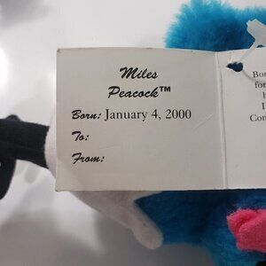 For collectors of plush toys, here is a rare Millennium Twins Millicent & Miles Peacock Plush Collectible Privilege Y2K JCPenney. This colorful and washable bird plush toy has a size of small (6-14 inches) and is suitable for boys and girls aged 3 and above. The peacock plush toy is made by SCI Int'l, a well-known brand in the toy industry.