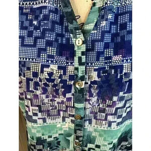 Millennium XL Multicolor Geometric Print Button Down Sheer Blouse Sleeveless