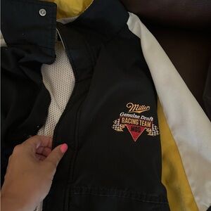 Black and yellow Miller Genuine Draft Racing Team jacket with logo.