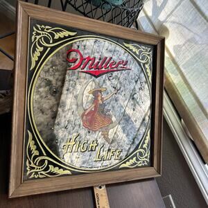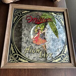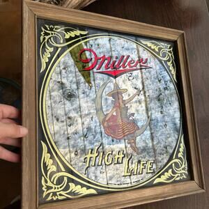 Miller High Life Bar Mirror Sign Vintage Girl on the Moon 1979 14” X 14”