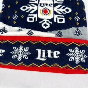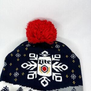 Miller Lite Beer Christmas Snowflake Hat Knit Cap Pom Beanie One Size
