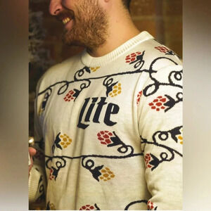 Miller Lite Knit Holiday Ugly Christmas Sweater Unisex Festive