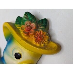 Add a touch of vintage charm to your home decor with these Miller Studios Chalkware wall Hangers. The set includes two wall hooks featuring adorable Mr. and Mrs. Bluebird, and they were made in 1972, making them a wonderful addition to any retro or mid-century collection. The hangers are perfect for hanging hats, coats, or any other items that need a little extra organization and a pop of whimsy.