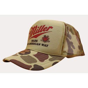 Brand New adults one size fits most, Miller Beer Trucker Hat with adjustable closure in the rear. Foam Hat with poly mesh back.