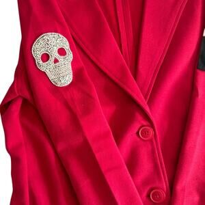 Miller Wendt Embellished Blazer Stretch Collared Red Black Silver Women's Sz XS