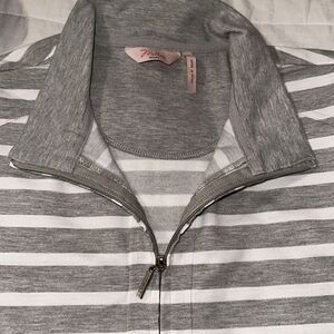 Millers 12 Heather Gray White Striped Mock Neck Full Zip Sweatshirt Jacket