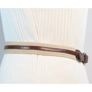 Millers Surcingle Mens Belt Small Brown Leather Ends Overlay On Beight Canvas